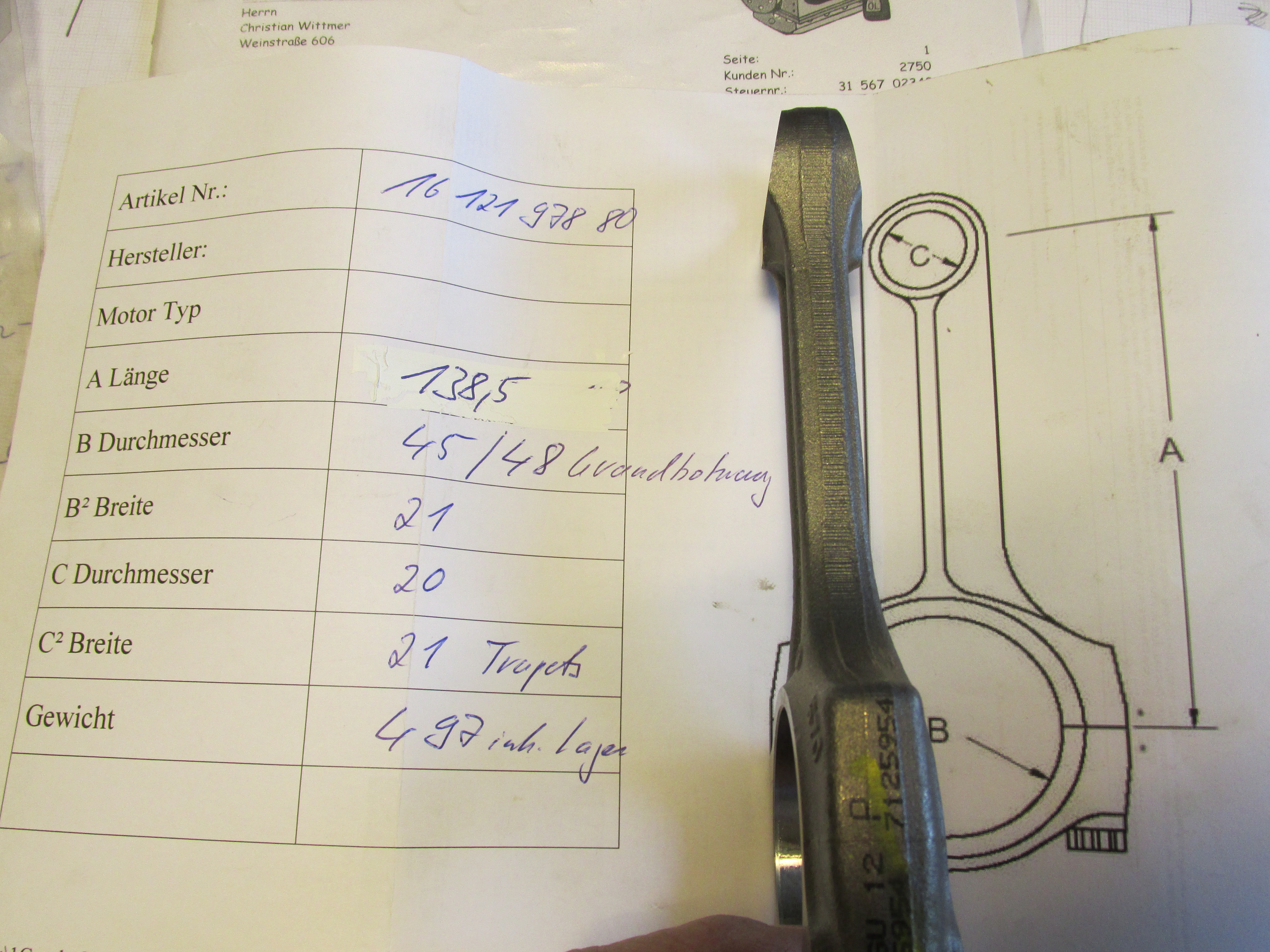 Neue Peuelstange mit Lager